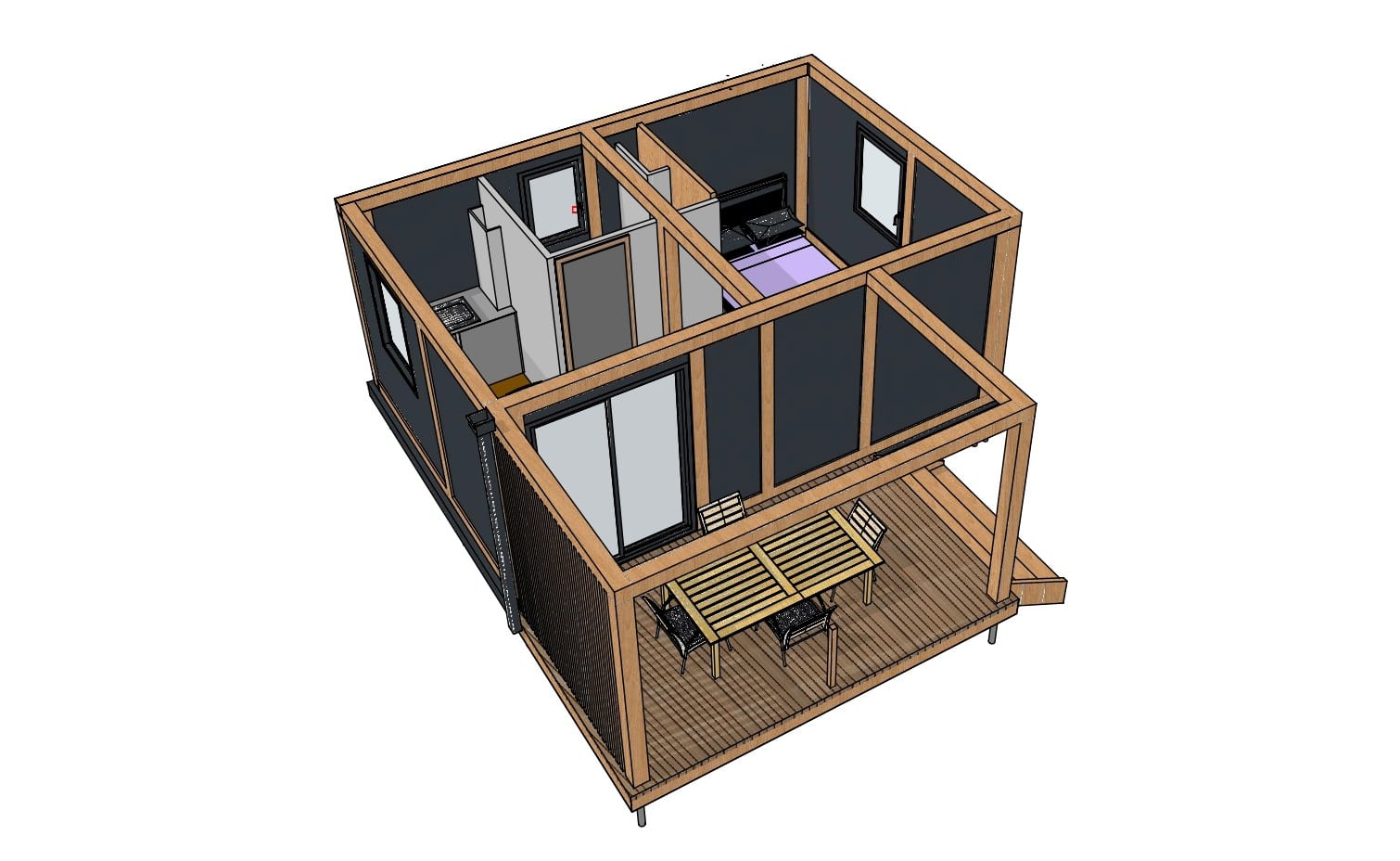 - Plancher renforcé & isolé (R = 4.60 m².K/W) avec structure en bois massif et panneaux hydrofuges pour une meilleure durabilité .
